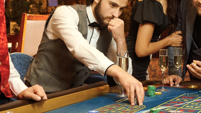 Roulette is a casino game with a gaming table and a wheel, and on both of them the same 37 or 38 numbers are depicted. Players can bet chips on one of the numbers or on number combinations. The croupier, who accompanies the game, throws a ball into the spinning wheel. The number where the ball ends indicates which numbers and therefore which bets on the game table win that round. The players then receive a payout that is between 1 and 35 times their own bet.